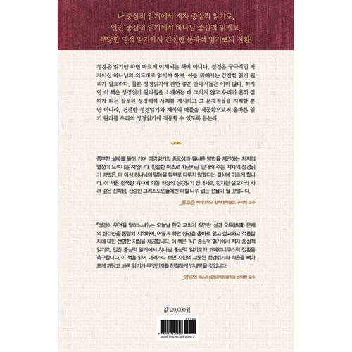 "¼º°æÀÌ ¹«¾ùÀ» ¸»ÇÏ´À³Ä"´Â ¿À´Ã³¯ Çѱ¹ ±³È¸°¡ Á÷¸éÇÑ ¼º°æ ¿Àµ¶(è¦ÔÁ) ¹®Á¦ÀÇ ½É°¢¼ºÀ» Åë·ÄÈ÷ ÁöÀûÇϸç, ¾î¶»°Ô ÇÏ¸é ¼º°æÀ» ¿Ã¹Ù·Î ÀÐ°í ¼³±³Çϰí Àû¿ëÇÒÁö¿¡ ´ëÇÑ ¼±¸íÇÑ ÁöħÀ» Á¦°øÇÕ´Ï´Ù. ÀÌ Ã¥Àº ¡°³ª¡± Áß½ÉÀû Àб⿡¼ ÀúÀÚ Áß½ÉÀû Àбâ·Î, Àΰ£ Áß½ÉÀû Àб⿡¼ Çϳª´Ô Áß½ÉÀû Àбâ·ÎÀÇ ÄÚÆä¸£´ÏÄí½ºÀû ÀüȯÀ» Ã˱¸ÇÕ´Ï´Ù. ÀÌ Ã¥À» ÀÐ¾î ³»·Á°¡´Ù º¸¸é ÀÚ½ÅÀÇ ±×¸©µÈ ¼º°æÀбâ¿Í Àû¿ëÀ» »À¾ÆÇÁ°Ô ±ú´Ý°í ¹Ù¸¥ ÀбⰡ ¹«¾ùÀÎÁö¸¦ Ä£ÀýÇÏ°Ô ¾È³»¹ÞÀ» °ÍÀÔ´Ï´Ù.