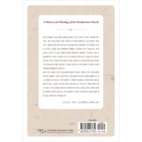 ¹Ì±¹ ±³È¸¿Í Çѱ¹ ±³È¸¸¦ Áß½ÉÀ¸·Î Àå·Î±³È¸ÀÇ ¿ª»ç¸¦ ±× ŵ¿ºÎÅÍ Çö´ë¿¡ À̸£±â±îÁö Áø¼úÇϸç, ¹Ì±¹ Àå·Î±³È¸¿Í Çѱ¹ Àå·Î±³È¸ÀÇ ¿¬¼Ó¼ºÀ» µå·¯³½´Ù. ±× ¿ª»ç¸¦ °íÂûÇÔ¿¡ ÀÖ¾î¼ Æ¯È÷ Á¤Åë ½ÅÇаú »õ·Î¿î ½ÅÇÐ °£ÀÇ °¥µî, ±×¸®°í ±×°ÍÀ¸·Î ÀÎÇÑ ¿ª»ç Àü°³¸¦ ¼Ò°³ÇÏ°í ±× ÀÇÀǸ¦ Æò°¡ÇÑ´Ù.