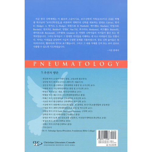 I trust that Pneumatology, one of his excellent books will bring a large Korean audience to all of it¡¯s chapters.